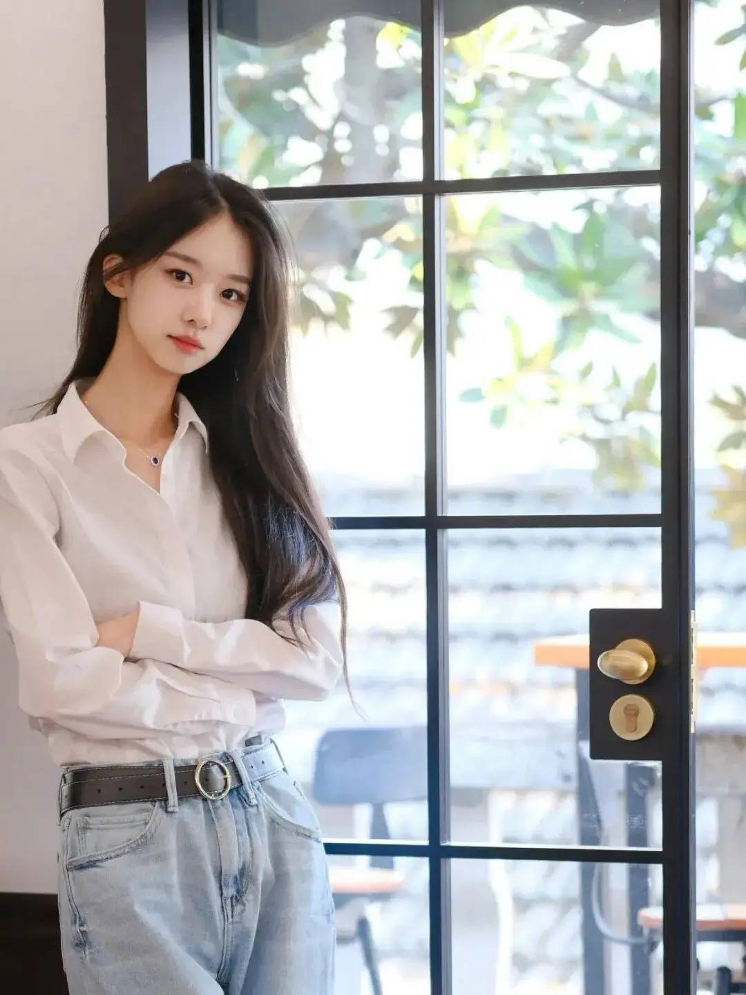 人物双臂交叉站立,姿态干练又带感。这种姿势巧妙打造随性气场,利用复古玻璃窗的光影衬托,白衬衫牛仔裤的搭配简约又高级。加上自然的神态,随手一拍就是文艺感满满的日常大片,学会这招,在咖啡馆这类场景出片轻松又有格调~